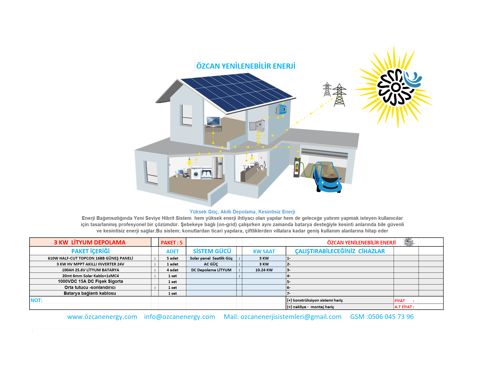 3KW LİTYUM DEPOLAMALI GÜNEŞ ENERJİ TESİSİ PAKET 5