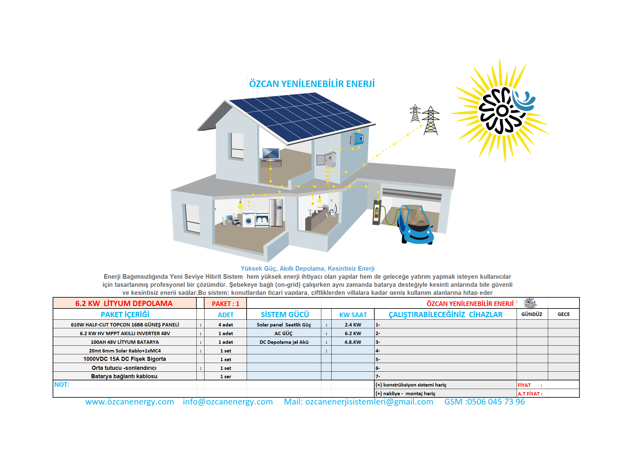 6.2 KW LİTYUM DEPOLAMALI GÜNEŞ ENERJİ TESİSİ PAKET 1