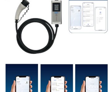 Mobil şarj istayonu, farklı akım seviyelerine uygun kablolu dönüştürücülerle çalışabilir (3.6kW, 7.4kW, 22kW).
