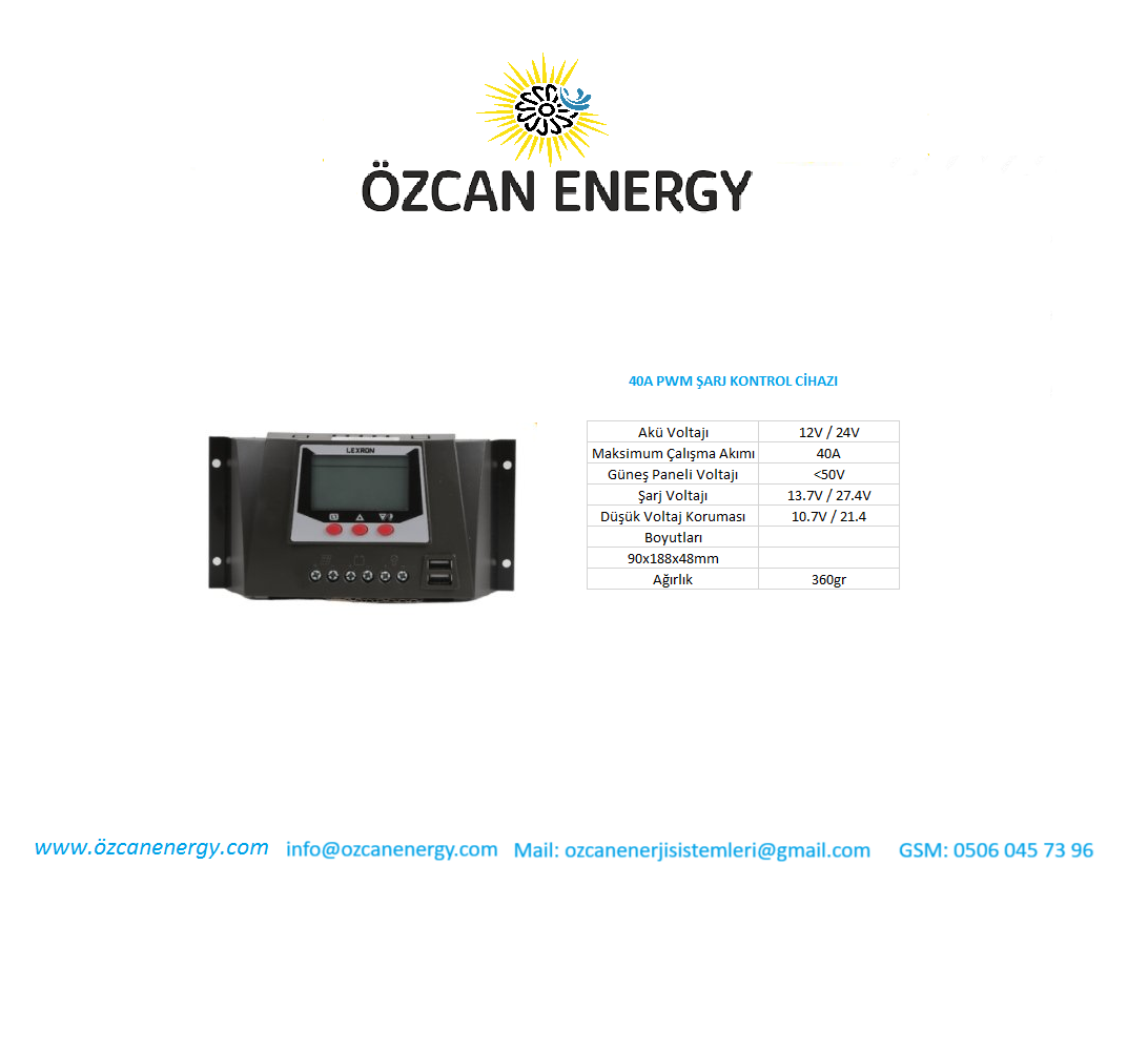 40A PWM ŞARJ KONTROL CİHAZI