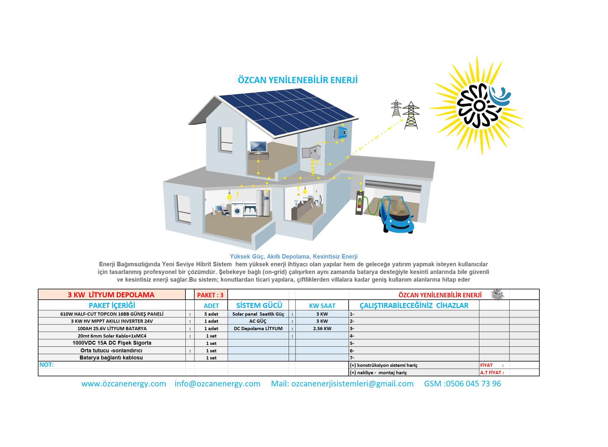 3KW LİTYUM DEPOLAMALI GÜNEŞ ENERJİ TESİSİ PAKET 3