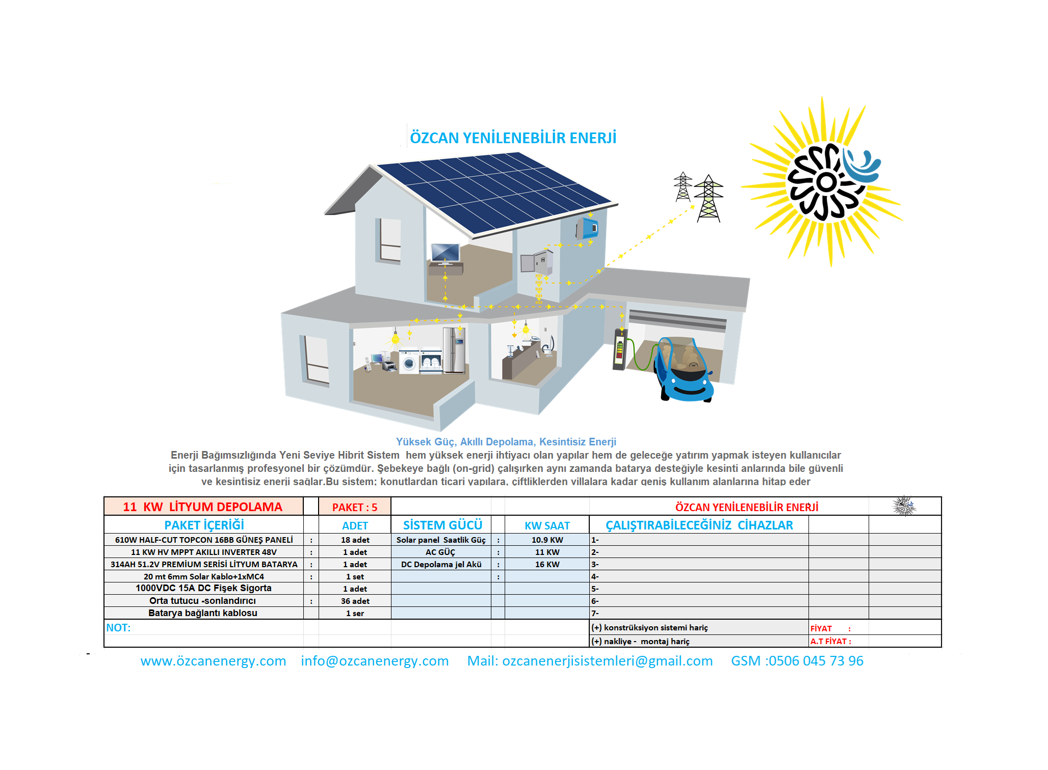 11 KW LİTYUM DEPOLAMALI GÜNEŞ ENERJİ TESİSİ PAKET 5