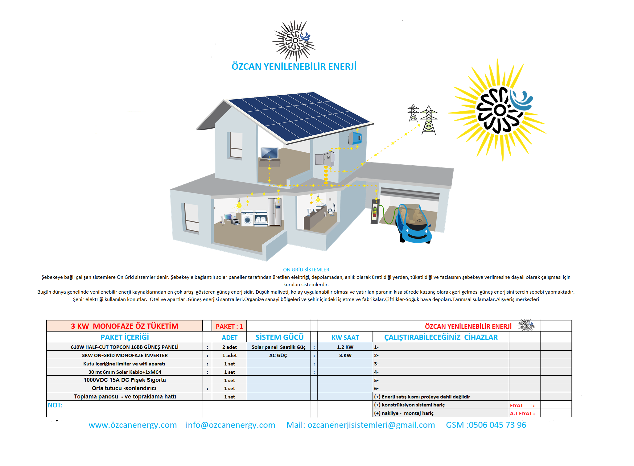 Not: Öz tüketim yöntemine uygundur. Elektrik satışı yapılmak isteniyorsa gerekli başvurular ve yasal izinler için ayrıca danışmanlık ücreti talep edilir. Yasal Başvuru ücreti, harçlar, vergiler ve tek hat şeması gibi maliyetler Alıcıya aittir.