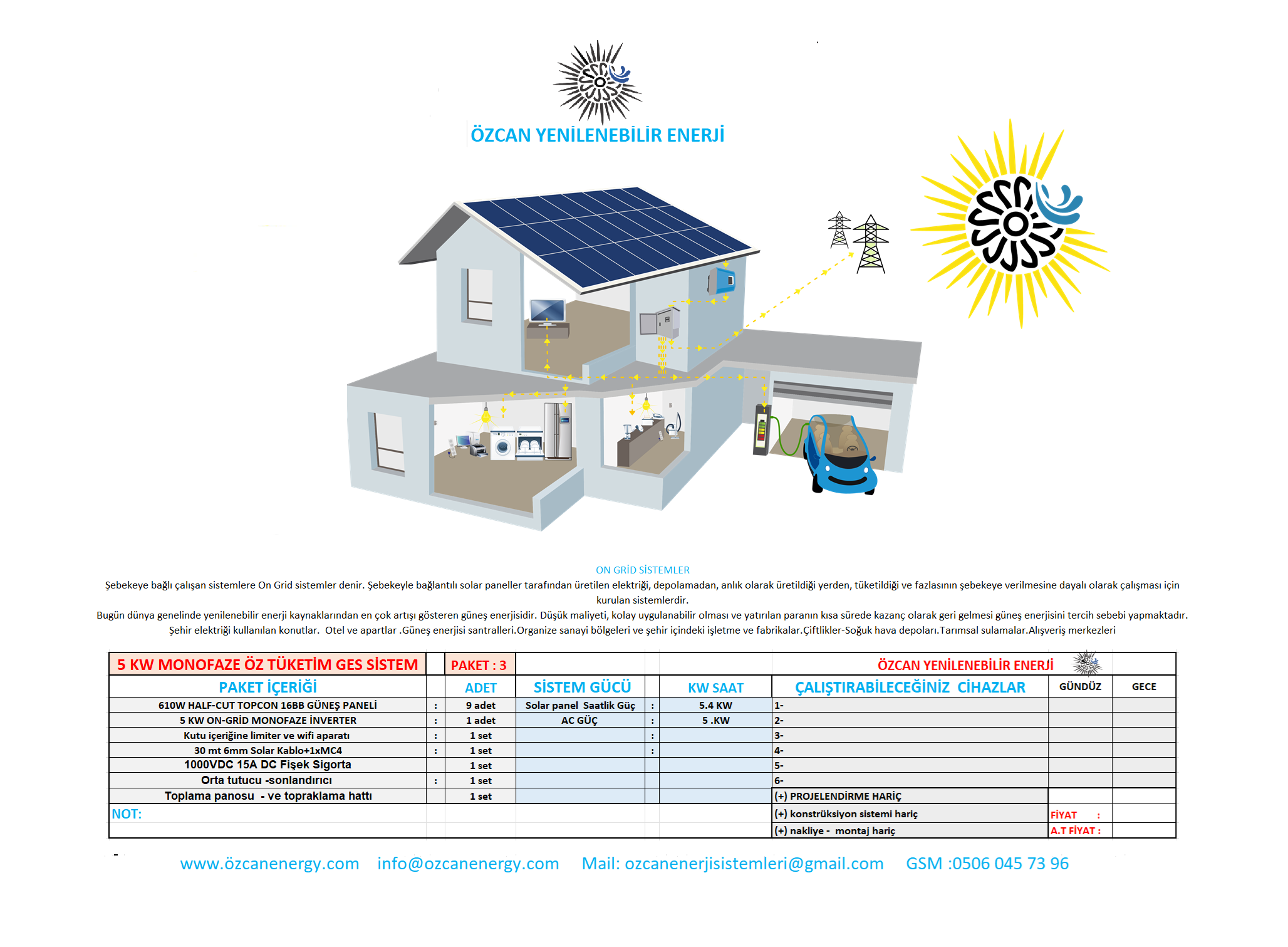 Not: Öz tüketim yöntemine uygundur. Elektrik satışı yapılmak isteniyorsa gerekli başvurular ve yasal izinler için ayrıca danışmanlık ücreti talep edilir. Yasal Başvuru ücreti, harçlar, vergiler ve tek hat şeması gibi maliyetler Alıcıya aittir.