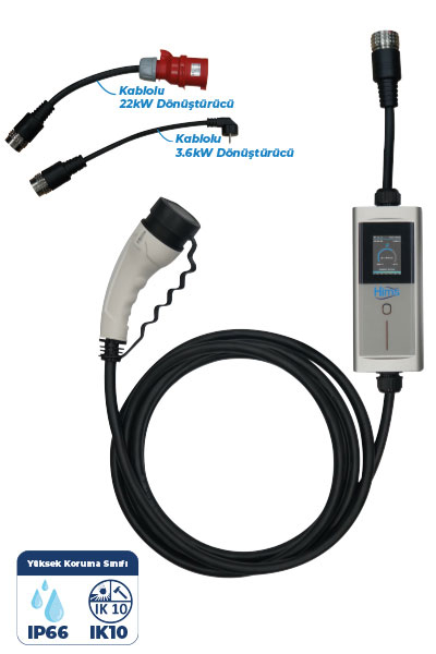 Dayanıklı kablo yapısı ve modüler bağlantılarıyla taşınabilir elektrikli araç şarj kablosu gereksinimini tek cihazda karşılar.